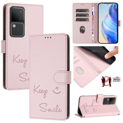 Funda de Cuero Rfid con Relieve de Sonrisa Global para Vivo V30 Pro 5G (Rosa)