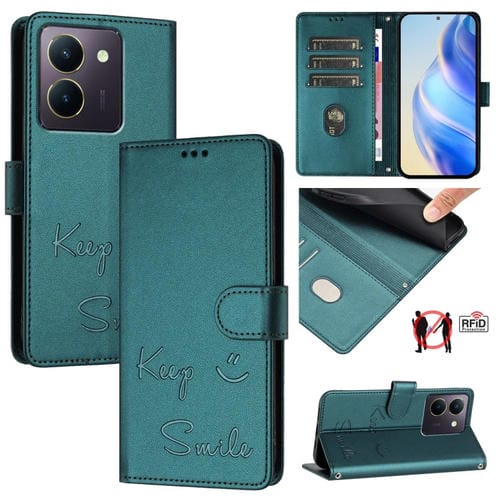 Funda de Cuero Rfid con Relieve de Sonrisa Global para Vivo Y36 5G (Verde Pavo Real)