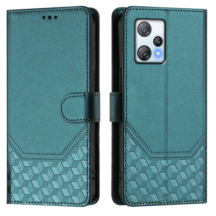 Funda de Cuero Rfid con Relieve en Panal para BlackView A53 (Verde Pavo Real)