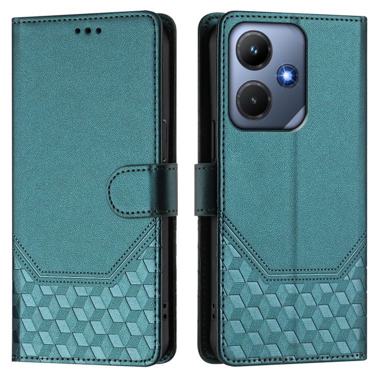 Funda de Cuero Rfid con Relieve en Panal para Infinix Hot 30I (Verde Pavo Real)
