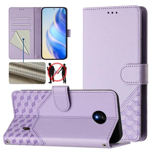 Funda de Cuero Rfid con Relieve en Panal para Nokia C10/C20 (Morado Claro)