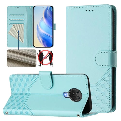 Funda de Cuero RFID con Relieve en Panal para Nokia G20/G10 (Verde Menta)