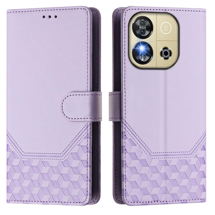 Funda de Cuero Rfid con Relieve en Panal para Oukitel C57S (Morado Claro)