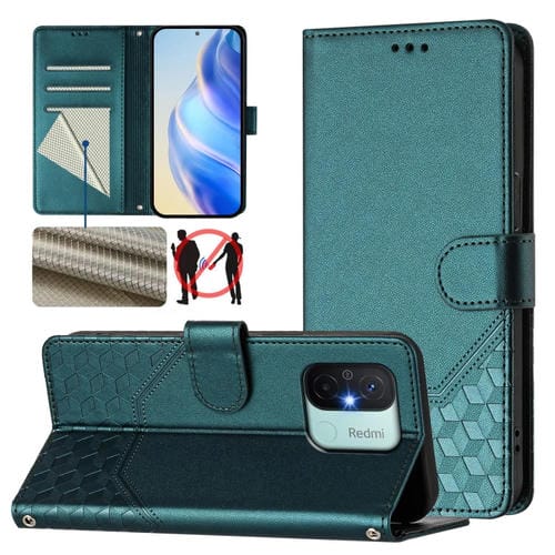 Funda de Cuero Rfid con Relieve En Panal para Redmi 12C/11A (Verde Pavo Real)