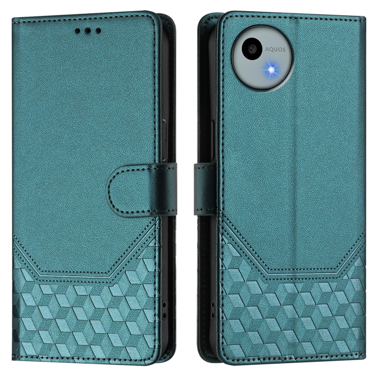 Funda de Cuero RFID con Relieve en Panal para Sharp Aquos Wish 4 (Verde Pavo Real)