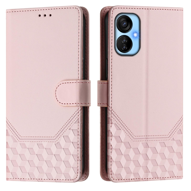 Funda de Cuero Rfid con Relieve en Panal para Tecno Spark 9 Pro/Spark 9T (Rosa)