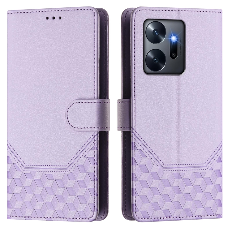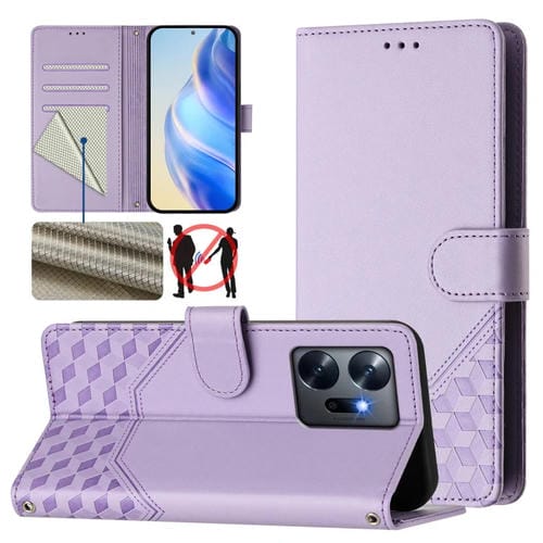 Funda de Cuero Rfid con Relieve en Panal para Teléfono Infinix Zero 20 (Morado Claro)