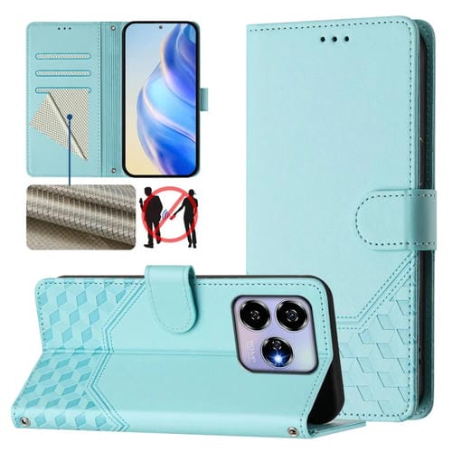Funda de Cuero Rfid con Relieve En Panal para ZTE Blade V60 4G/Axon 60 4G (Verde Menta)