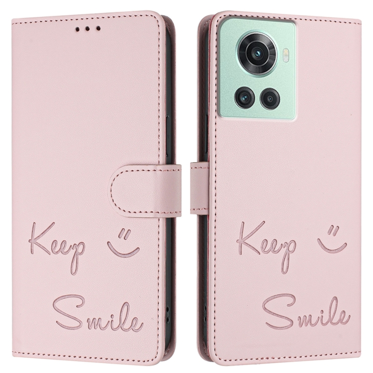 Funda de Cuero Rfid con Relieve Smile para OnePlus 10R/Ace (Rosa)