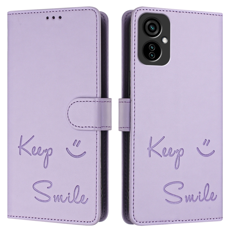 Funda de Cuero Rfid con Relieve Smile para Tecno Camon 19 Neo (Morado Claro)