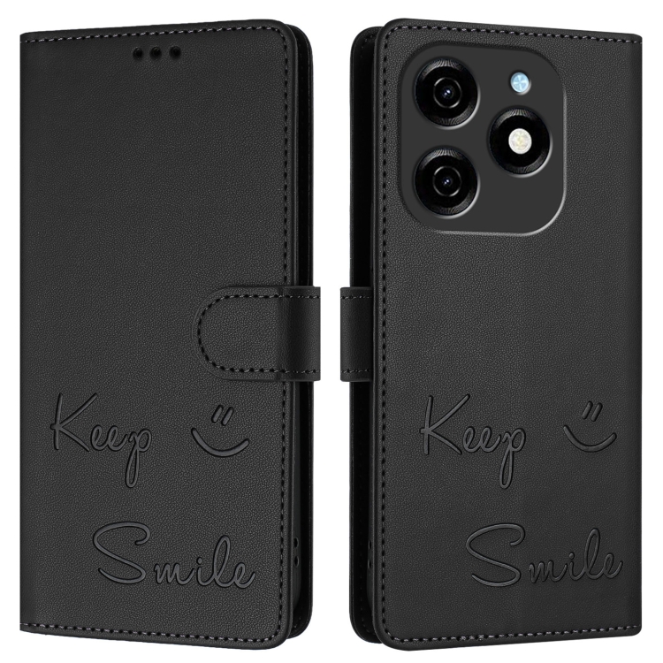 Funda de Cuero Rfid con Relieve Smile para Tecno Spark 20 (Negra)