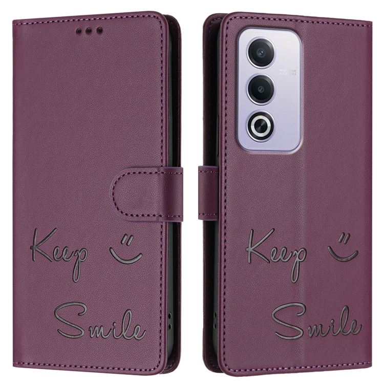 Funda de Cuero Rfid con Relieve Sonriente para Oppo A3 Pro 5G Global/India (Violeta)