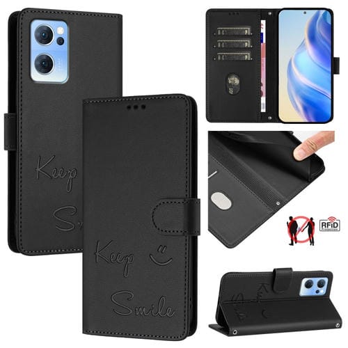 Funda de Cuero Rfid con Relieve Sonriente para Oppo Find X5 Lite (Negra)
