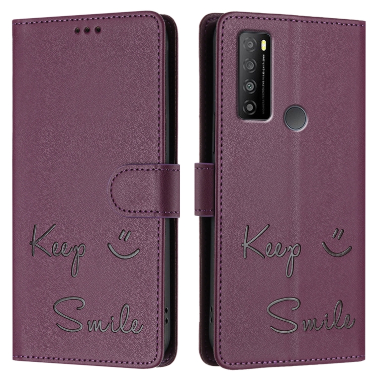 Funda de Cuero Rfid con Relieve Sonriente para TCL 30 Xl T701Dl (Violeta)