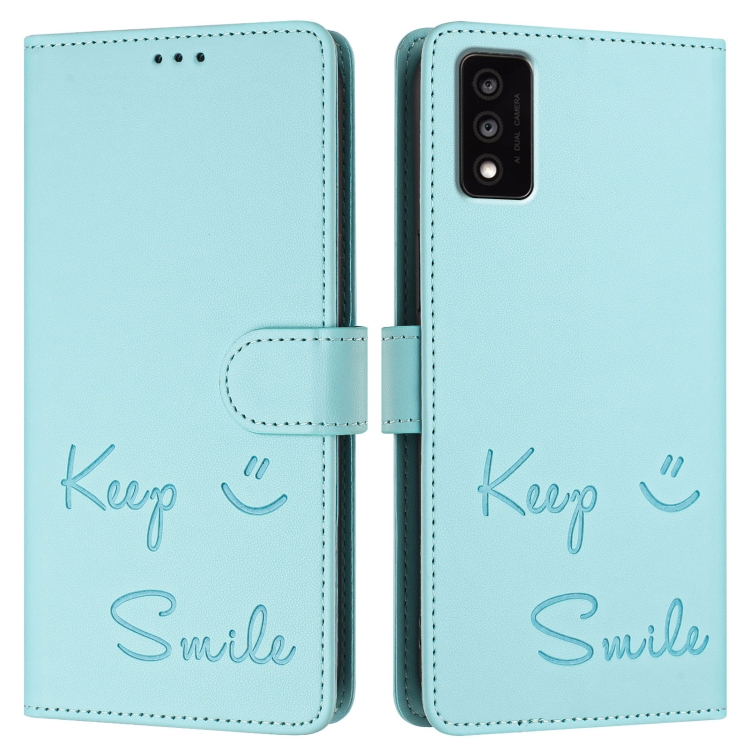 Funda de Cuero Rfid con Relieve Sonriente para TCL 30T T603Dl (Verde Menta)