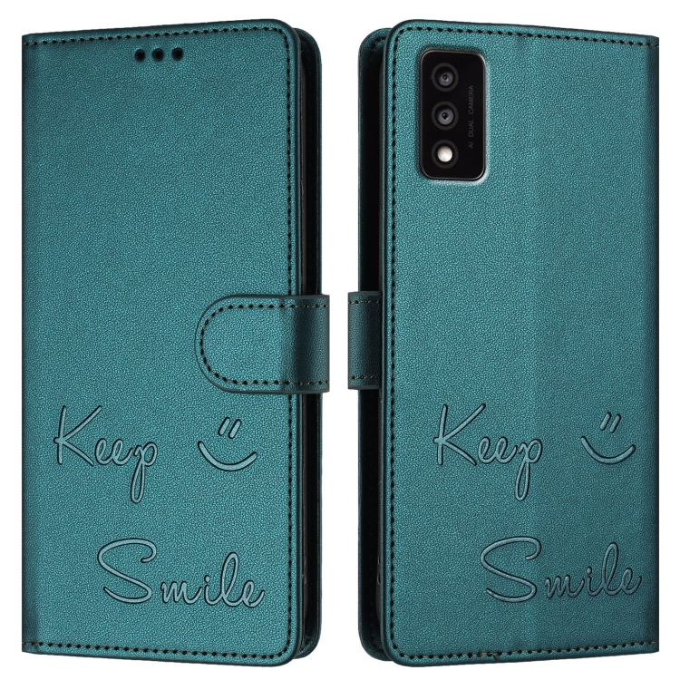 Funda de Cuero Rfid con Relieve Sonriente para TCL 30T T603Dl (Verde Pavo Real)