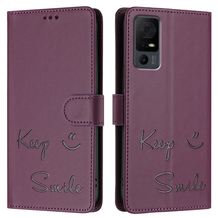Funda de Cuero Rfid con Relieve Sonriente para TCL 40 Xl/40 T T608Dl (Violeta)