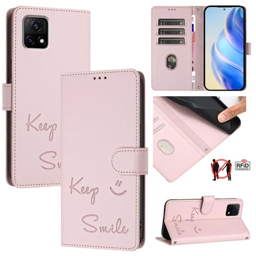 Funda de Cuero Rfid con Relieve Sonriente para Vivo Y52S 5G/Iqoo U3 (Rosa)
