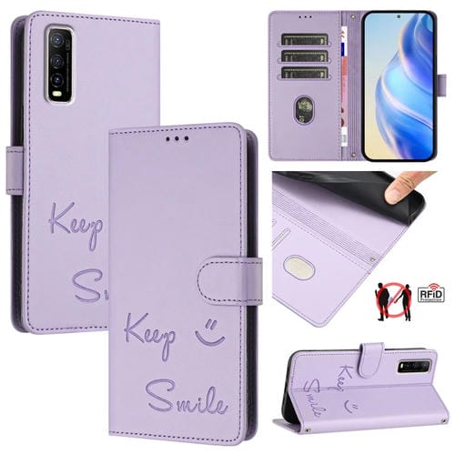 Funda de Cuero Rfid con Relieve Sonriente para Vivo Y70S (Morado Claro)