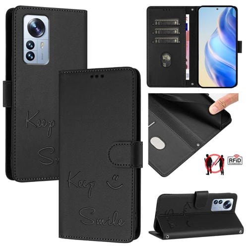 Funda de Cuero Rfid con Relieve Sonriente para Xiaomi 12 Pro/12S Pro (Negra)