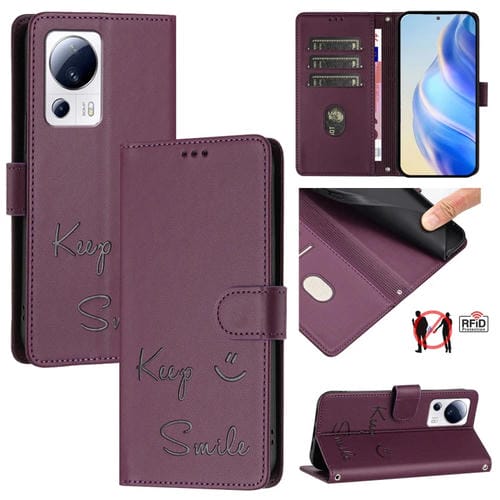 Funda de Cuero Rfid con Relieve Sonriente para Xiaomi 13 Lite/Civi 2 (Violeta)