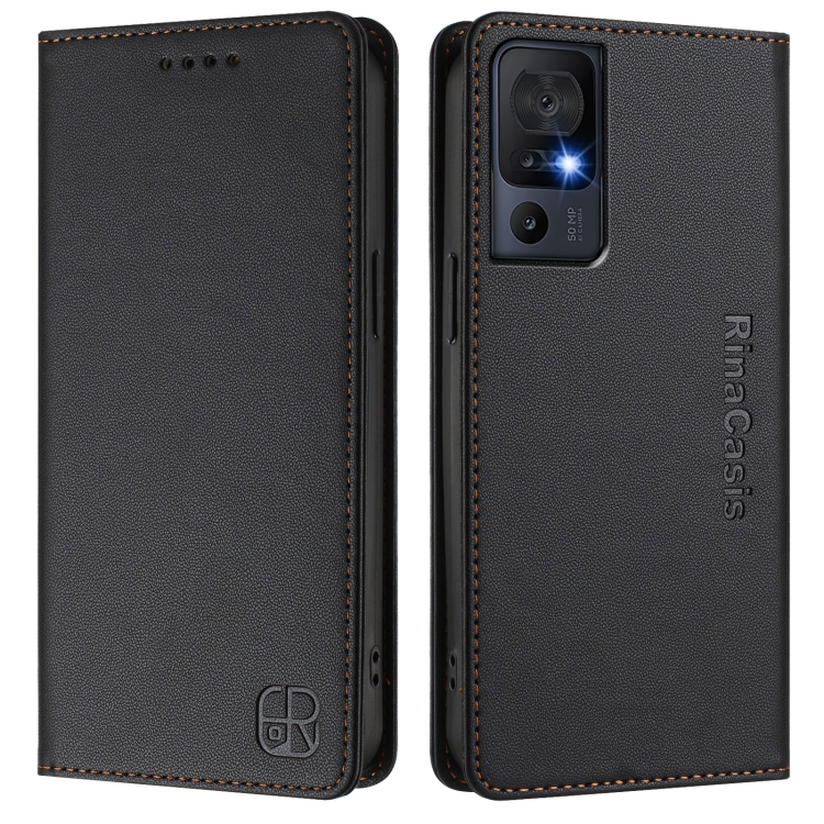 Funda de Cuero Rfid con Succión Magnética y Doble Pliegue para TCL 40 Se Rc01 (Negra)