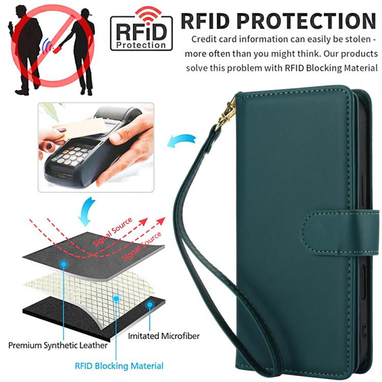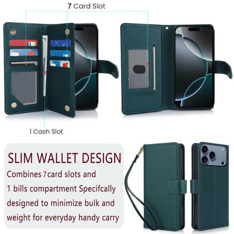 Funda de cuero RFID con tarjetero para iPhone 17 Pro Max (verde)
