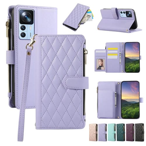 Funda de Cuero Tipo Billetera con Cremallera Rombal para Xiaomi 12T/12T Pro (Morado)