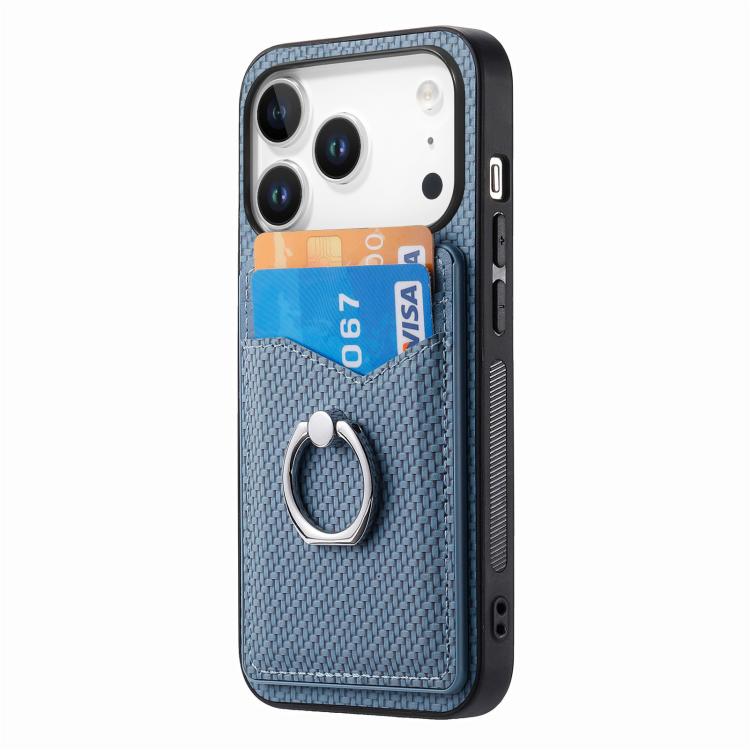 Funda de fibra de carbono con anillo para tarjeta para iPhone 17 Pro Max (azul)