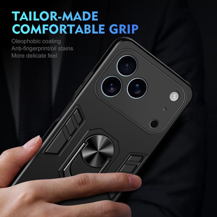 Funda de metal con anillo a prueba de golpes para iPhone 17 Pro (negra)