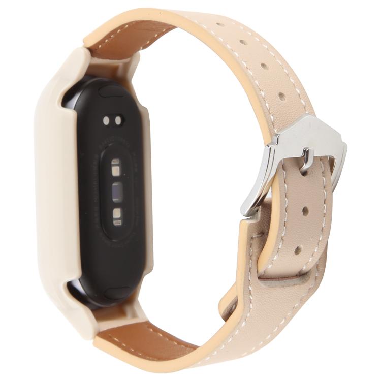 Funda de PC para Xiaomi Smart Band 9 con correa de cuero de microfibra integrada (beige + blanco retro)