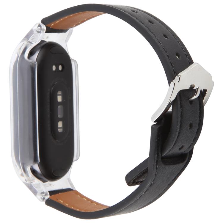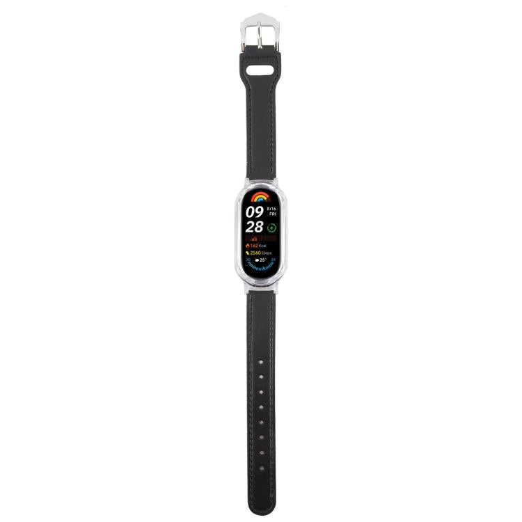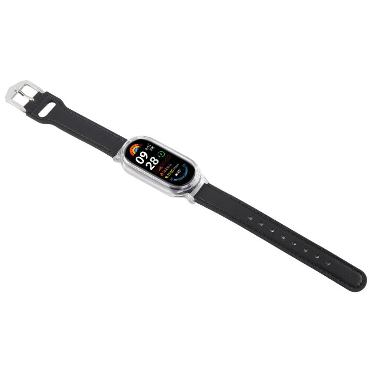 Funda de PC para Xiaomi Smart Band 9 con correa de cuero de microfibra integrada (transparente y negra)