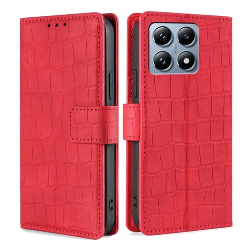 Funda de Piel con Cierre Magnético y Diseño de Cocodrilo para Xiaomi 14T Pro 5G (Rojo)