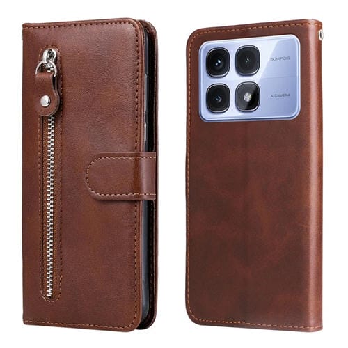 Funda de Piel con Cremallera y Textura de Becerro a la Moda para Redmi K70 Ultra (Marrón)