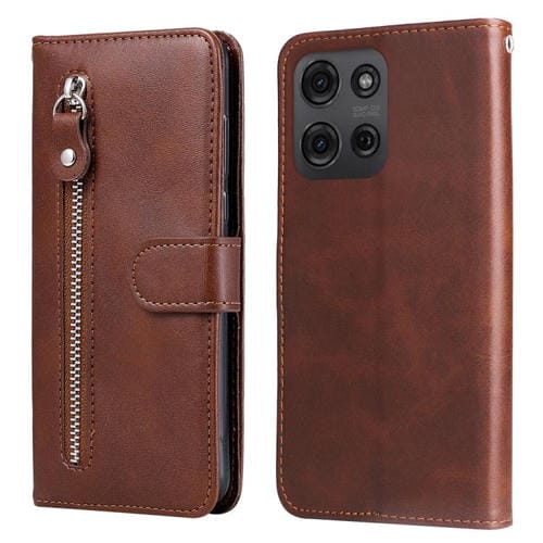 Funda de Piel con Cremallera y Textura de Becerro para Motorola Moto G75 5G (Marrón)