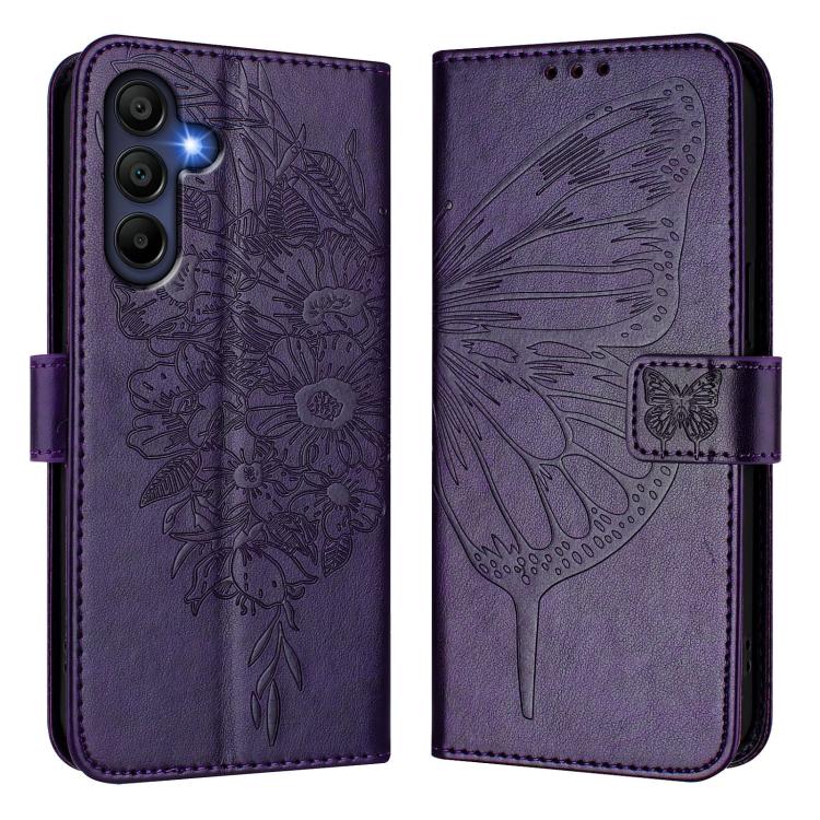 Funda de piel con diseño de mariposa en relieve para Samsung Galaxy A17 5G (morado oscuro)