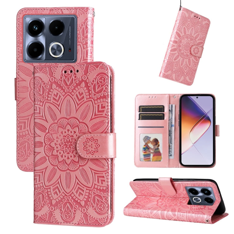 Funda de Piel con Estampado de Girasoles en Relieve para Infinix Note 40 4G (Rosa)
