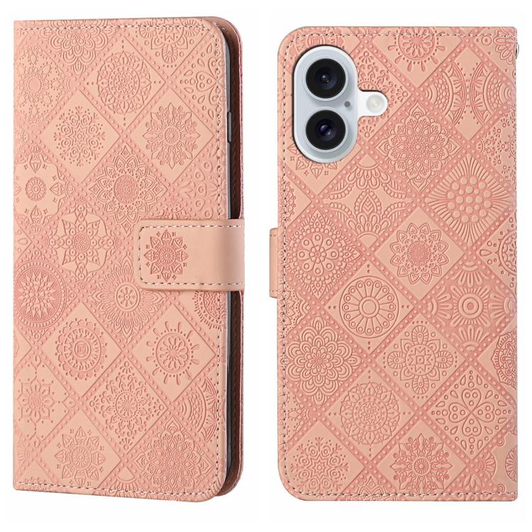 Funda de piel con estampado étnico en relieve para iPhone 17 (rosa)