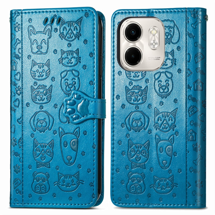 Funda de Piel con Relieve de Gato y Perro para Infinix Smart 9 (Azul)
