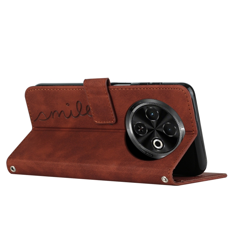 Funda de Piel con Relieve en Forma de Corazón para Tecno Spark 30C (Marrón)