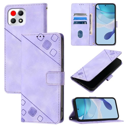 Funda de Piel con Relieve para Teléfono T-Mobile Revvl 7 5G (Morado Claro)