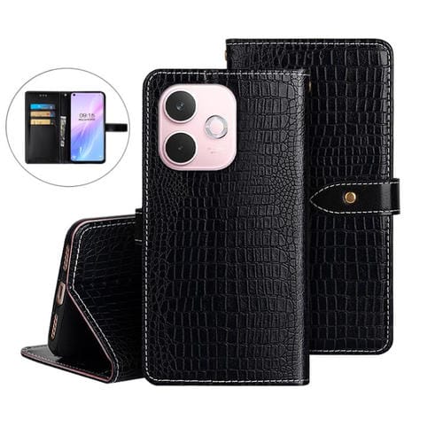 Funda de Piel con Textura de Cocodrilo para Oppo A5 Pro 5G Global Idewei (Negra)
