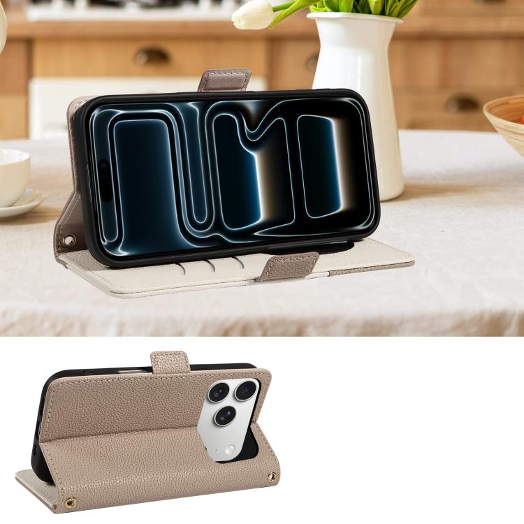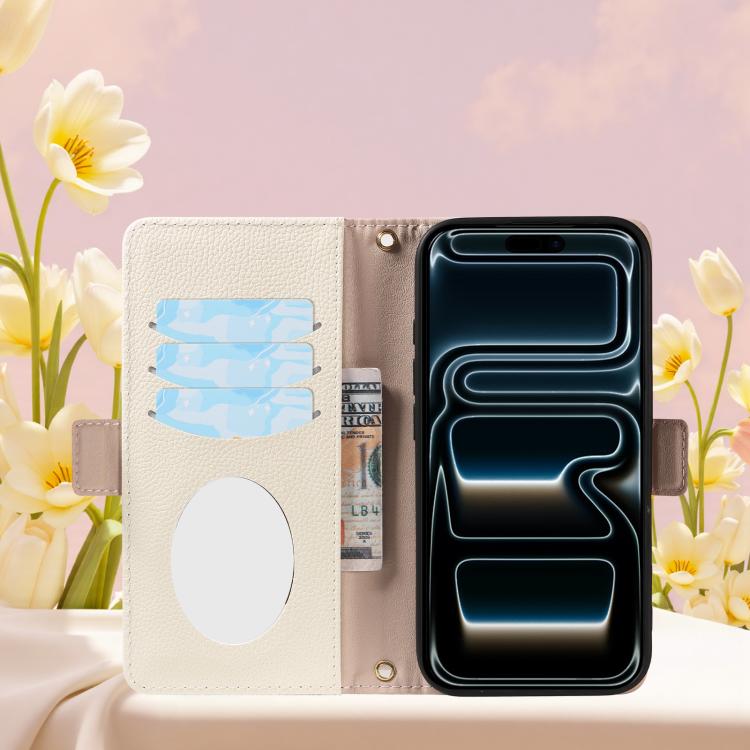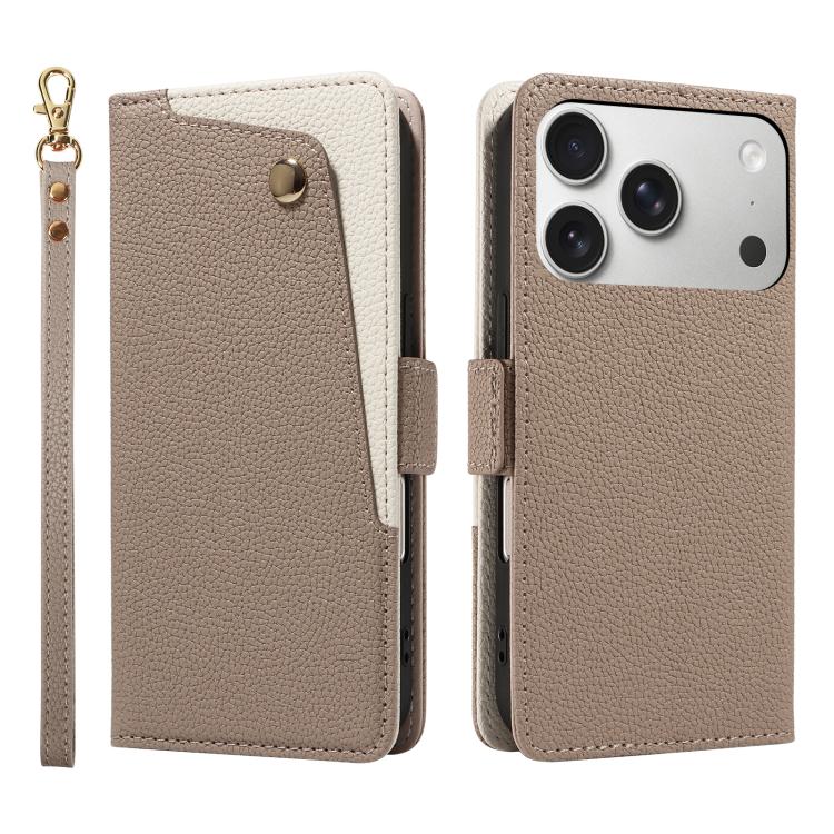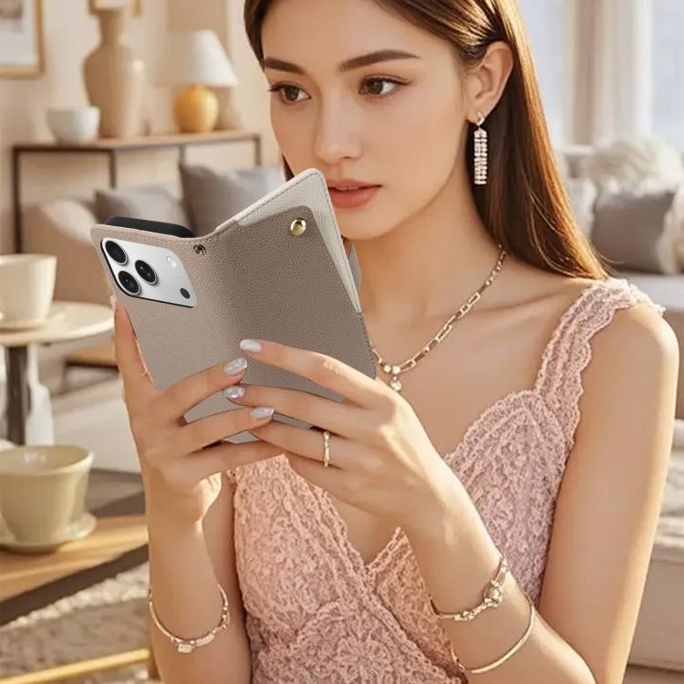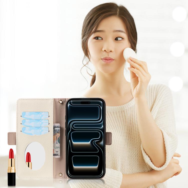 Funda de piel con textura de lichi y espejo para iPhone 17 Pro (marrón)