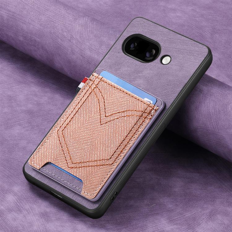 Funda de Piel con Textura Vaquera para Google Pixel 9A con Ranura para Tarjetas (Morado)