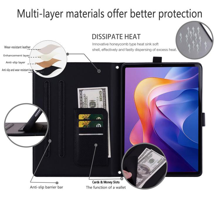 Funda de piel de lichi con tacto de gato para Samsung Galaxy Tab A9 (negra)