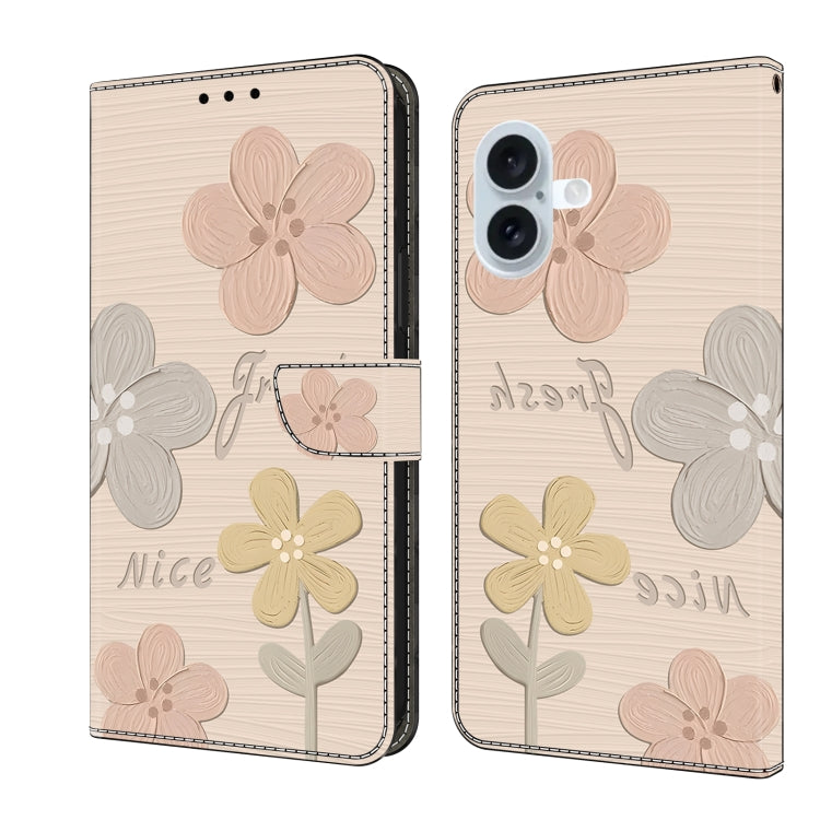 Funda de Piel Pintada a Mano para iPhone 16 (Flores Beige)