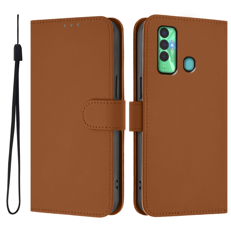 Funda de Cuero con Textura de Piel y Cordón para Tecno Spark 7P (Marrón)