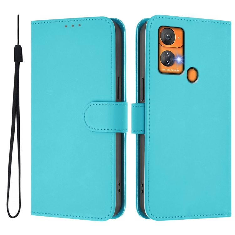 Funda de Piel Sintética con Cordón para Teléfono Oukitel C33 (Azul Lago)