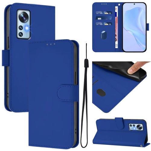 Funda de Piel Sintética con Cordón para Xiaomi 12 5G/12S 5G/12X 5G (Azul Oscuro)