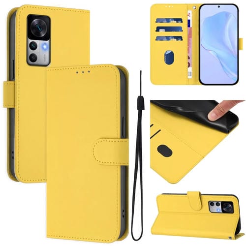 Funda de Piel Sintética con Cordón para Xiaomi 12T/12T Pro (Amarillo Limón)